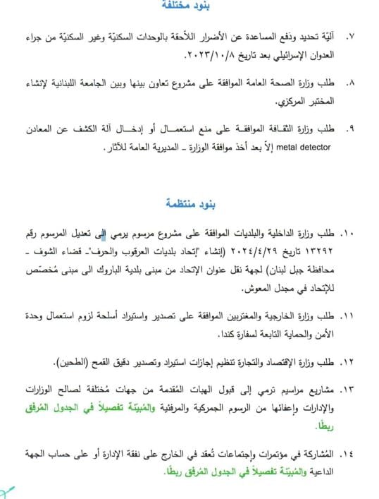 تحديد آلية دفع المساعدات عن الأضرار الناتجة عن العدوان الإسرائيلي بعد 8 تشرين الأول 2023.