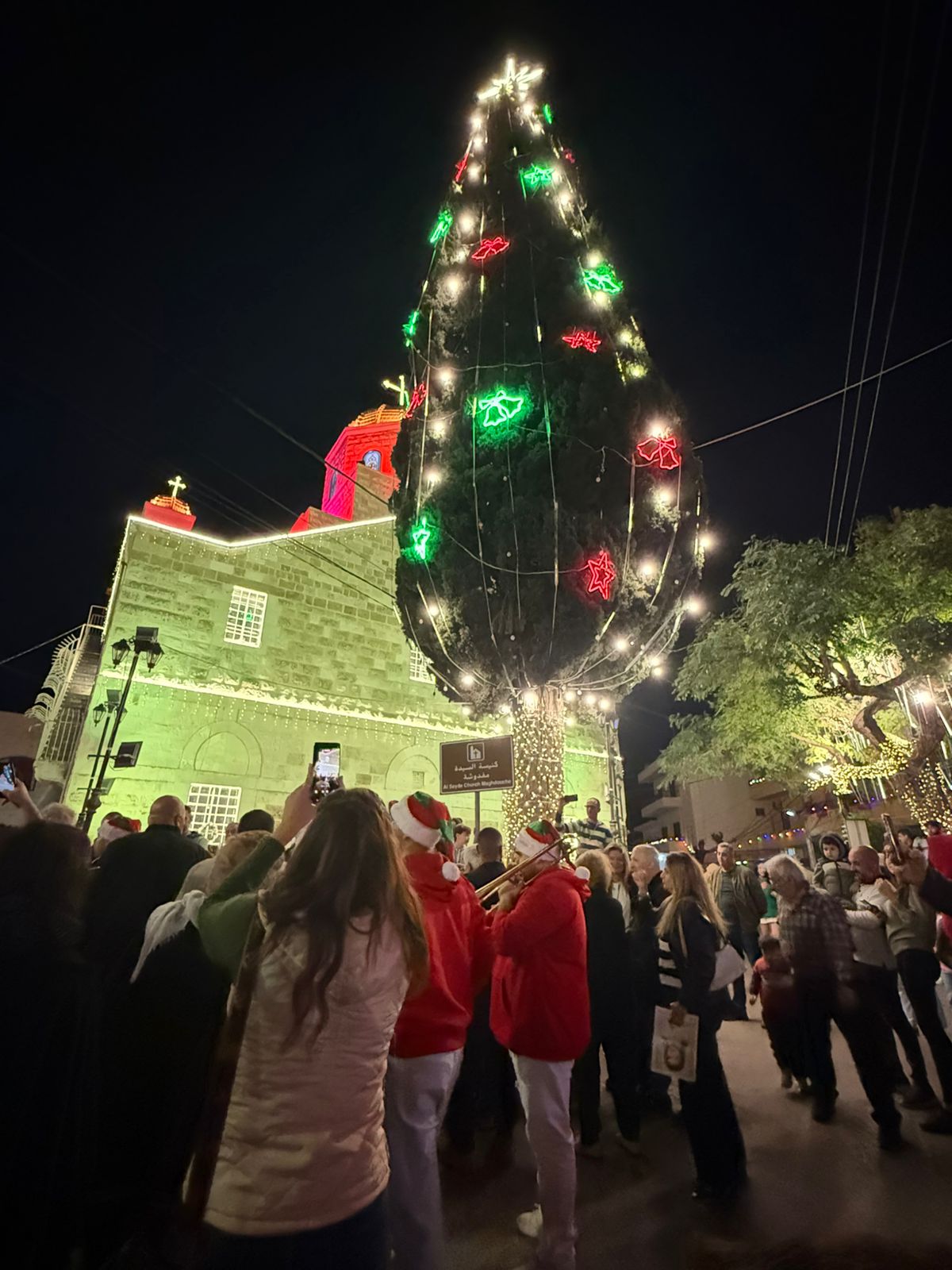 وتزيّنت ساحة مغدوشة بالأضواء والزينة التي أضفت أجواء احتفالية مميزة إيذانًا ببدء موسم الأعياد.