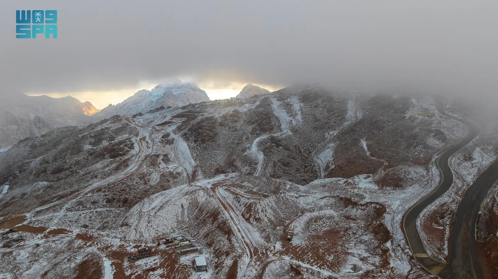أما في السعودية، فقد شهدت مرتفعات جبال اللوز في منطقة تبوك شمال غربي المملكة تساقطاً للثلوج، خصوصاً في تروجينا، وسط انتشار واسع لمقاطع فيديو وصور وثّقت المشهد النادر. وذكرت وكالة الأنباء السعودية أن تساقط الثلوج تزامن مع أمطار خفيفة، فيما شهدت مناطق أخرى أمطاراً تراوحت بين الخفيفة والمتوسطة.