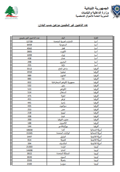 نشرت وزارة الداخلية والبلديات جداول تتضمن: