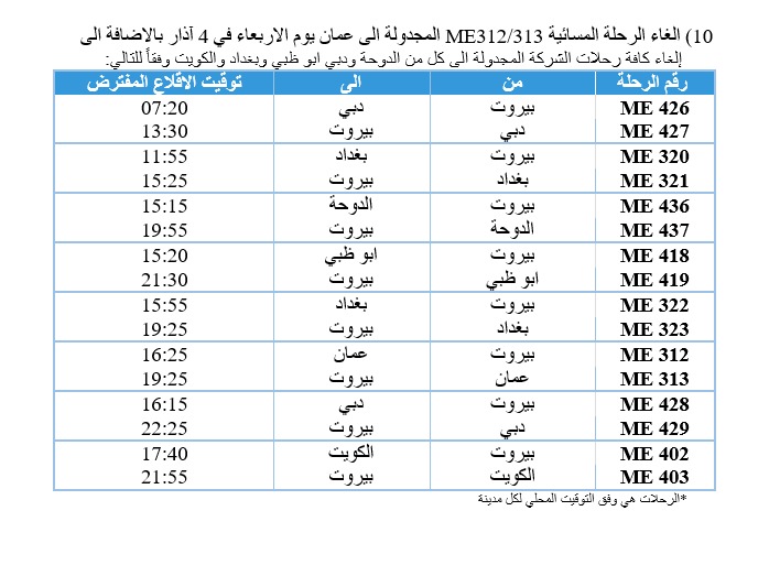 "الميدل إيست" تعدّل مواعيد رحلات... وتُلغي البعض منها