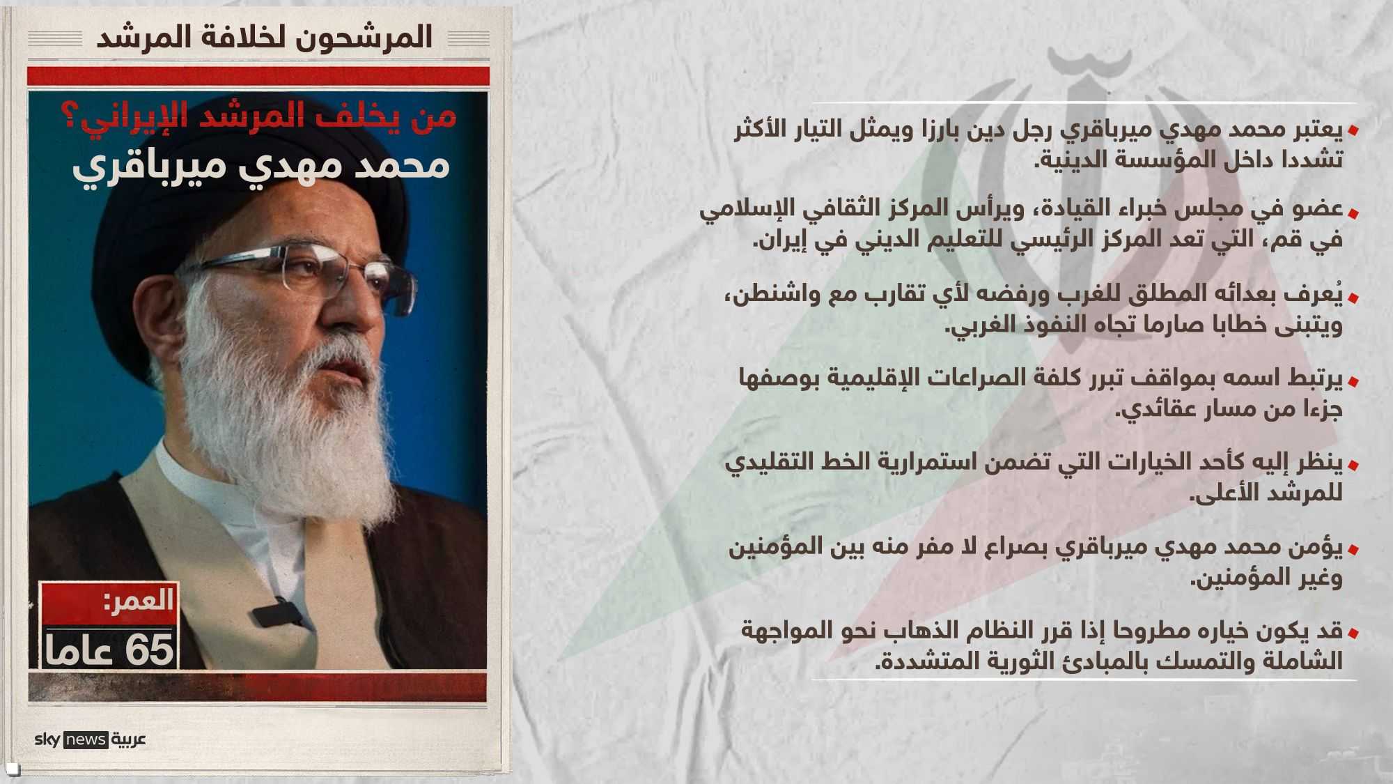كما ترى أن علاقته الوثيقة بالحرس الثوري تشكل عاملاً إضافياً يضعف فرص قبوله، إذ إن اختياره – في حال حدوثه – قد يكون نتيجة ضغط من الحرس الثوري على الجهات المسؤولة عن اختيار المرشد.