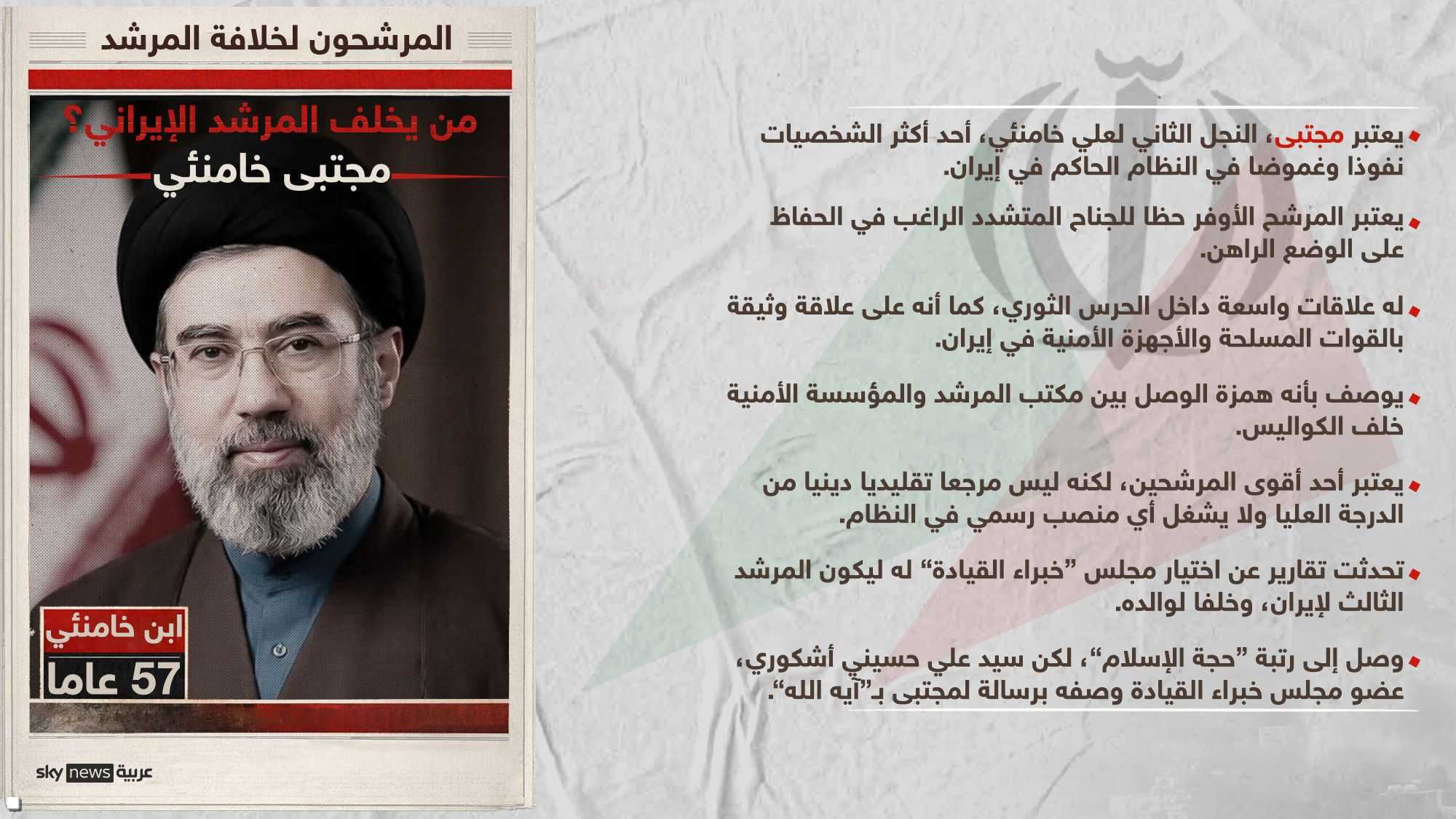 وفي هذا السياق، يتطرق إلى اسم مجتبى خامنئي الذي يُطرح أحياناً كخليفة محتمل، مؤكداً أن هذه الشخصية لا تحظى بتوافق داخل إيران، وأن حتى المؤسسات الإيرانية نفسها لديها تحفظات وملاحظات بشأنه، ما يجعل مسألة توليه موقع المرشد الأعلى أمراً غير سهل.