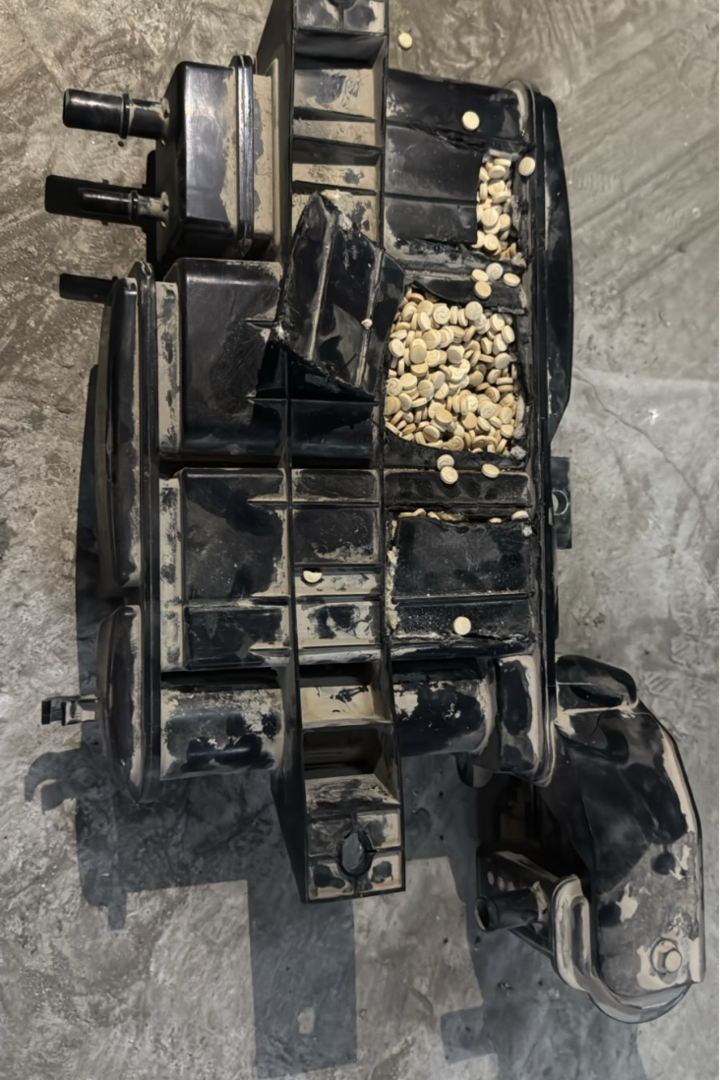 أما في القضية الثانية، فلفت الناطق الإعلامي إلى ورود معلومات تفيد بقيام مجهولين بإخفاء كمية من الحبوب المخدرة في منطقة صحراوية شمالية. وعلى الفور تحركت فرق التفتيش إلى الموقع، وبمسح المنطقة المحددة في البلاغ، تم العثور على محرك مركبة ملقى هناك، وبفحصه تبيّن احتواؤه على 20 ألف حبة مخدرة، فيما لا يزال التحقيق جارياً لتحديد المتورطين في القضية.