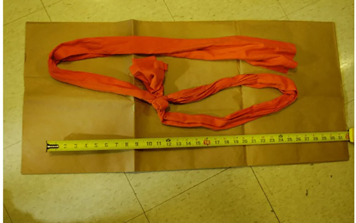 ووفقا للتقرير الرسمي، فإن حبل المشنقة المصنوع من ملاءة سرير برتقالية اللون والذي لُمّ من مكان الحادث، تبيّن لاحقا أنه ليس هو المستخدم في التسبب بوفاة إبستين.
